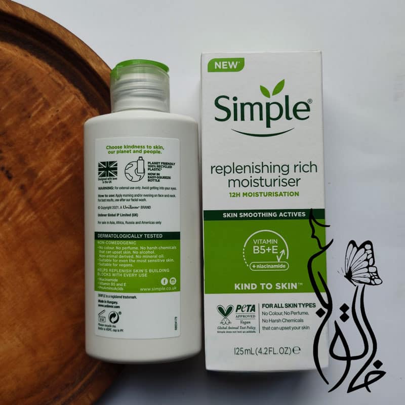کرم مرطوب کننده و آبرسان سیمپل از یک برند خوشنام و قدیمی معروف انگلیسی است، که سعی میکند با سادهترین ترکیبات، و بدون استفاده از مواد شیمیایی، بهترین مواد پوستی را تولید میکند. یکی از بهترین محصولات برند simple کرم آبرسان و مرطوب کننده است که بافت بسیار سبکی دارد و سریعا در بافت پوست نفوذ کرده و جذب میشود. فرمولاسیون این کرم پایه حیوانی ندارد و تا 12 ساعت پوست رابه خوبی مرطوب و شاداب نگه میدارد.