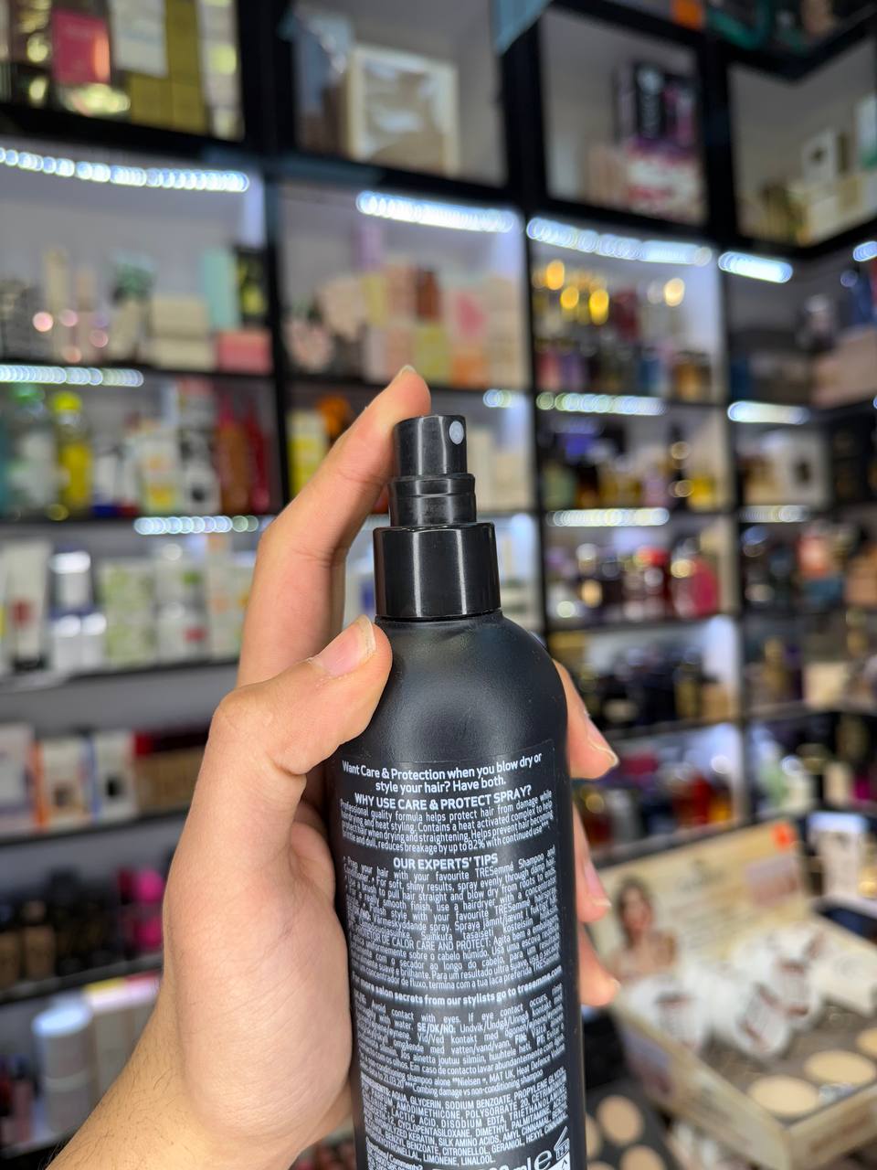 اسپری محافظ حرارتی مو Care & protect ترزمه دارای فرمولاسیون ویژه به درخشندگی و جلوگیری از شکنندگی و کدر شدن موها کمک می کند. اسپری پروتکت ترزمه به صورت تخصصی برای محافظت از مو در برابر حرارت سشوار و اتو طراحی شده است و قابلیت محافظت تا حرارت 230 درجه فارنهایت را دارد و از آسیب دیده ساقه مو جلوگیری می نماید. اسپری محافظ حرارتی مو ترزمه حاوی ترکیبات ترمیم کننده بوده و موجب کاهش وز مو ، حالت پذیری بیشتر و افزایش درخشش مو میشود با استفاده مداوم از این اسپری ترزمه بافت موها تا 82 درصد ترمیم شده و ساقه موها مستحکم تر میگردد.