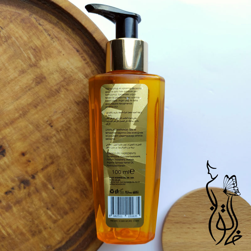اکسیر مراقبت موی سولکس حاوی روغن آرگان و کراتین؛ حاوی روغن آرگان و کراتین است. محصولی کاربردی با ترکیب روغن آرگان و کراتین و همچنین پرو ویتامین v باعث شفافیت و قدرتمند شدن ساختار مو میشود. این سرم مو شرکت سولکس برای موهای خشک و آسیب دیده بسیار مناسب بوده و در بازگرداندن رطوبت از دست رفته مو کمک می کند.