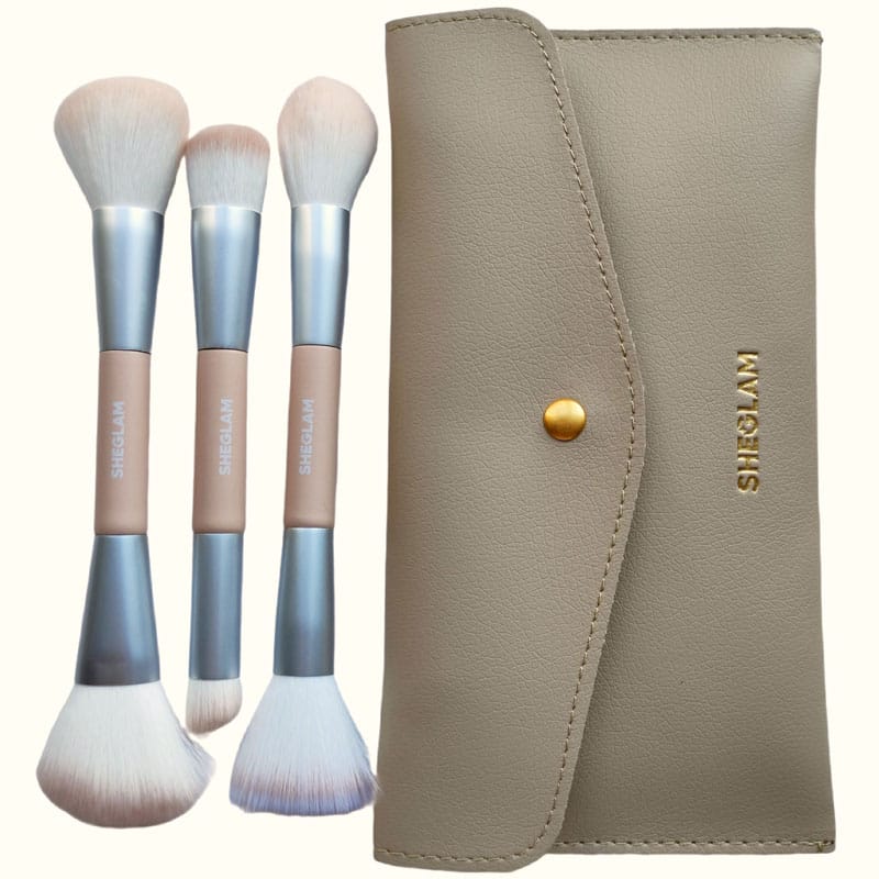 این ست براش شیگلم شامل ۳ براش دو سر است که قابل استفاده برای میکاپ صورت می باشد. براش های کاربردی این ست براش قابل استفاده برای کرم پودر، کانسیلر، هایلایتر، رژ گونه، برنزر و پودر است.