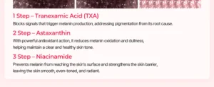 - حاوی آستاگزانتین، ترانگزامیک اسید و نیاسینامید