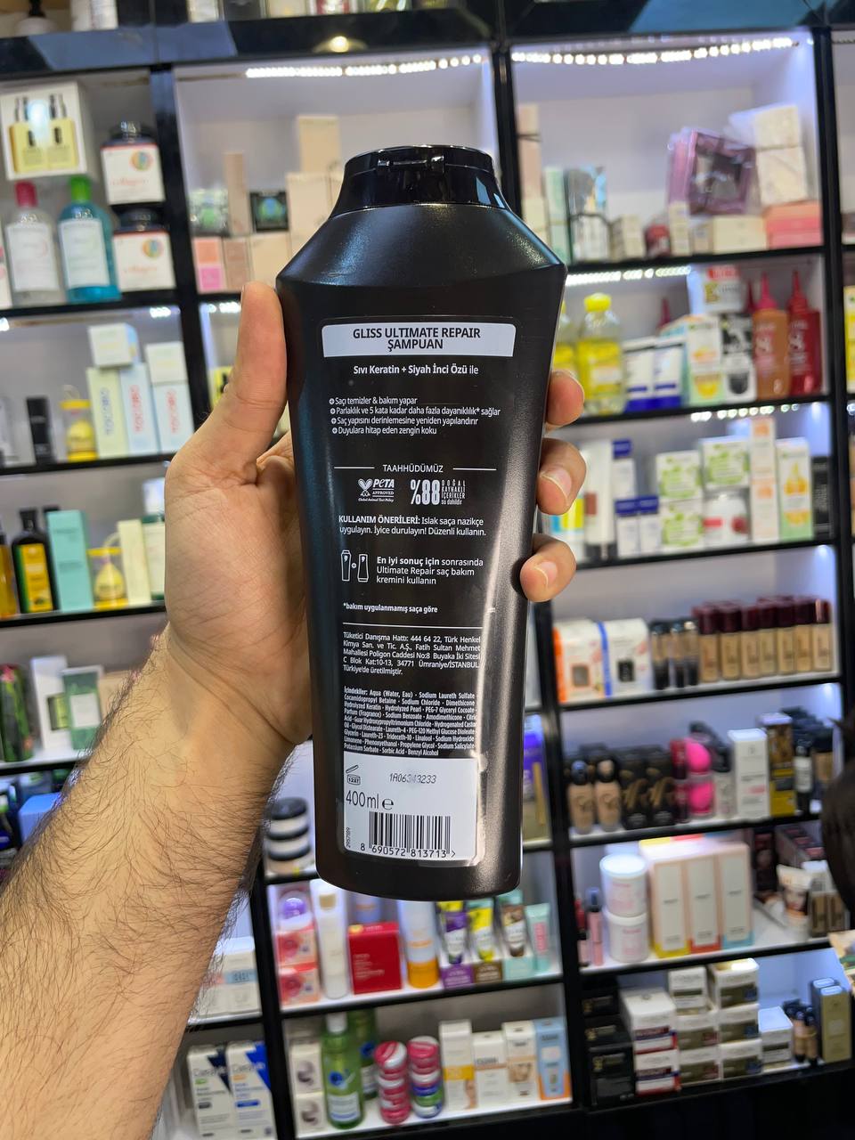 محصولات تخصصی گلیس Gliss با توجه به فرمولاسیون ویژه خود توانسته است به راحتی مخاطبان خاص خود را جذب کند و خیال شما را از داشتن یک شامپو با کیفیت راحت کند. شامپو مشکی گلیس مدل Ultimate Repair نه تنها یک ترمیم کننده خوب و قوی برای موهای شما است بلکه با توجه به فرمولاسیون ویژه ای که دارد موها را درخشان کرده و با آبرسانی و تزریق کراتین به بافت مو، موها را از خشکی و کدر بودن کاملا خلاص می کند. استفاده از شامپو با کیفیت و مناسب مو نه تنها باعث ترمیم و افزایش کیفیت بافت مو می شود بلکه حس فوق العاده ای نیز در شما ایجاد می کند.