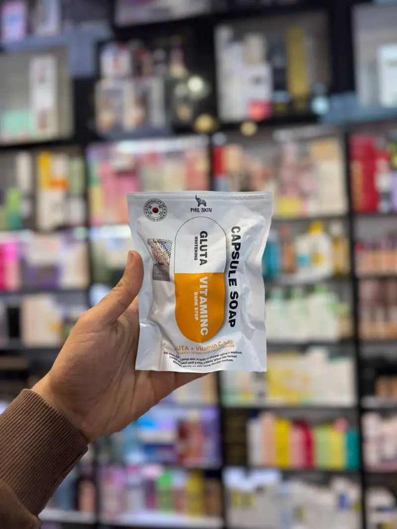 صابون کپسولی گلوتاتین و ویتامین سی فیل اسکین (Phil Skin Gluta Vitamin C Capsule Soap) محصولی نوآورانه با فورمولاسیونی پیرشفته و ترکیباتی غنی و گیاهی که تبدیل به یکی از محبوب ترین محصولات بهداشتی مراقبتی این روز های دنیا شده است؛ صابون کپسولی گلوتاتین و ویتامین سی فیل اسکین یکی از تخصصی ترین مدل های این برند برای رفع تیرگی و لک های پوستی میباشد چرا که فورمولاسیون ضدلک و روشن کننده این محصول بطور موثر باعث افزایش درخشندگی و شفافیت پوست شده و کدری و خستگی پوست صورت و بدن را به طور کامل از بین میبرد و با خواص آنتی اکسیدان خود از پوست محافظت کامل به عمل می آورد؛ طراحی به شکل کپسول این صابون نیز آن را بیش از پیش خاص کرده است.
