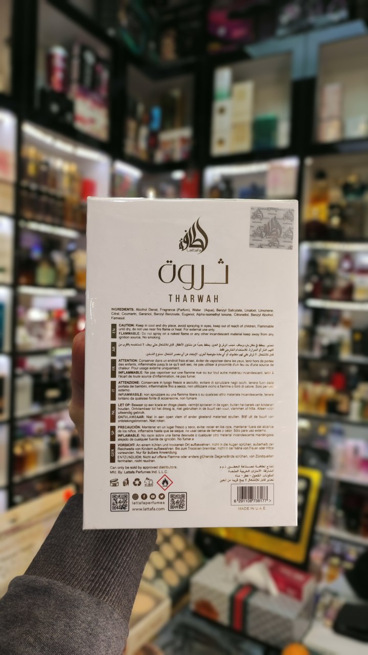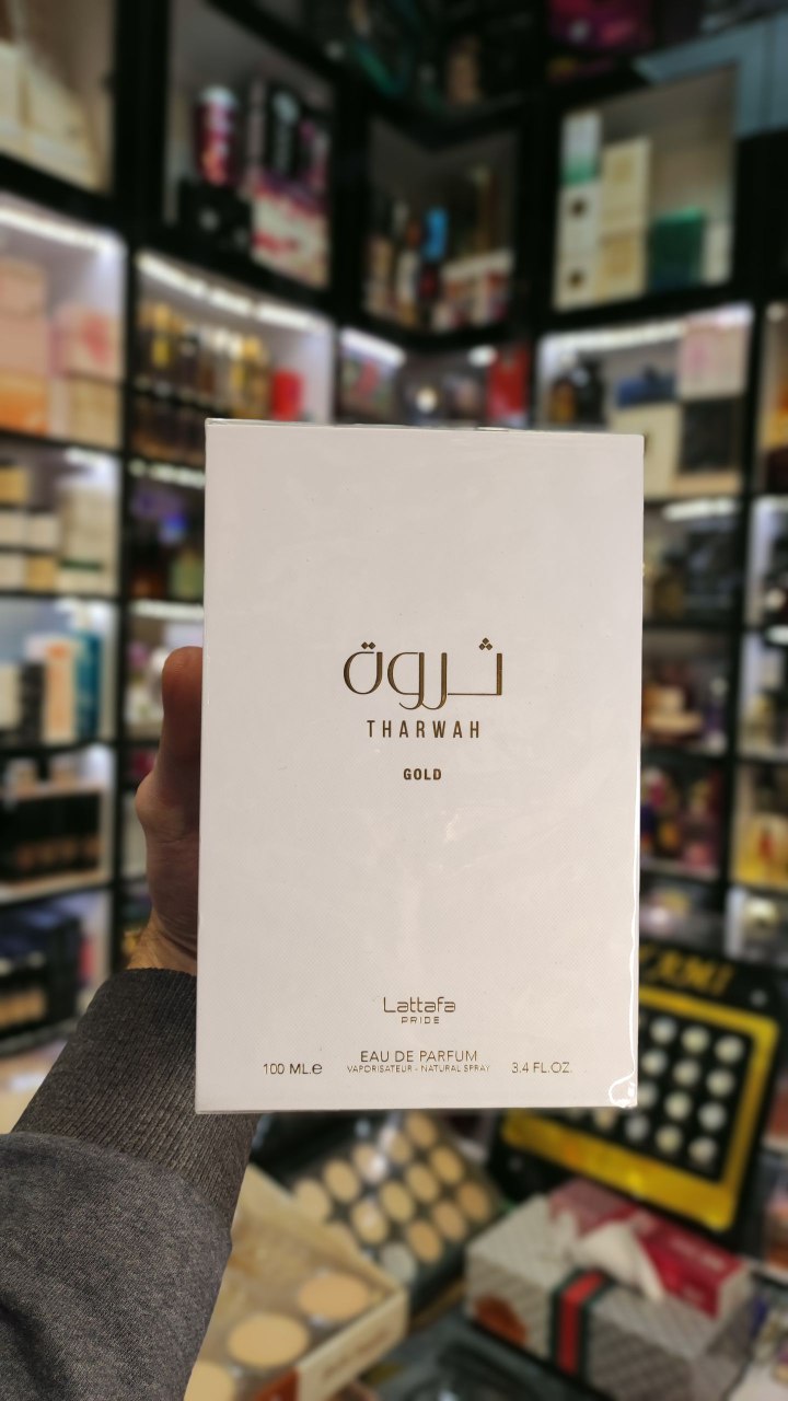 عطر ادکلن ثروه ثروت طلایی Tharwah gold لطافه پراید عطری زنانه با رایحه ی گرم و شیرین است و در گروه بویایی گلی معطر طبقه بندی می شود. عطر ثروه یکی از پرفروش ترین عطرهای زنانه عربی شرکت لطافه پراید با بوی فوق العاده خاص و بی نظیر دارد و به دلیل خلوص بسیار بالای عطر از ماندگاری و پخش بوی بالایی برخوردار است.