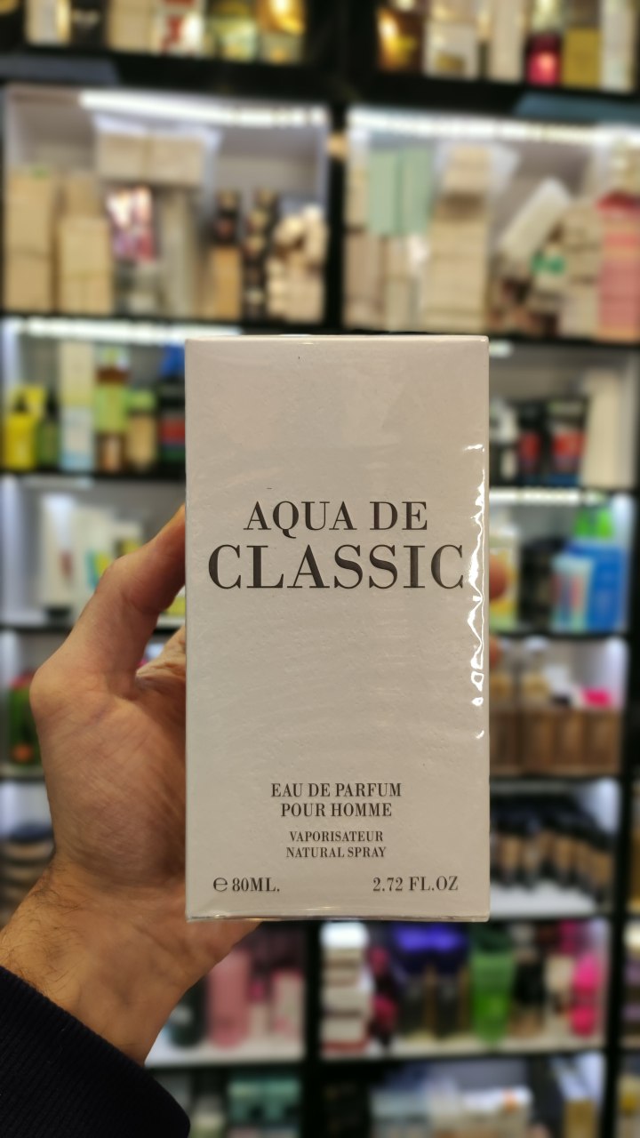 عطر آکوا دی کلاسیک فرگرانس ورد Fragrance World Aqua De Classic مشابه بوی عطر جورجیو آرمانی آکوا دی جیو پروفومو Giorgio Armani Acqua di Gio Profumo عطری با رایحه همهپسند توسط طیف گستردهای از سلیقهها یک ادکلن مردانه با گروه بویایی آروماتیک دریایی (آبزی) که بسیار همهپسند و از نظر خانمها بسیار جذاب میباشد.