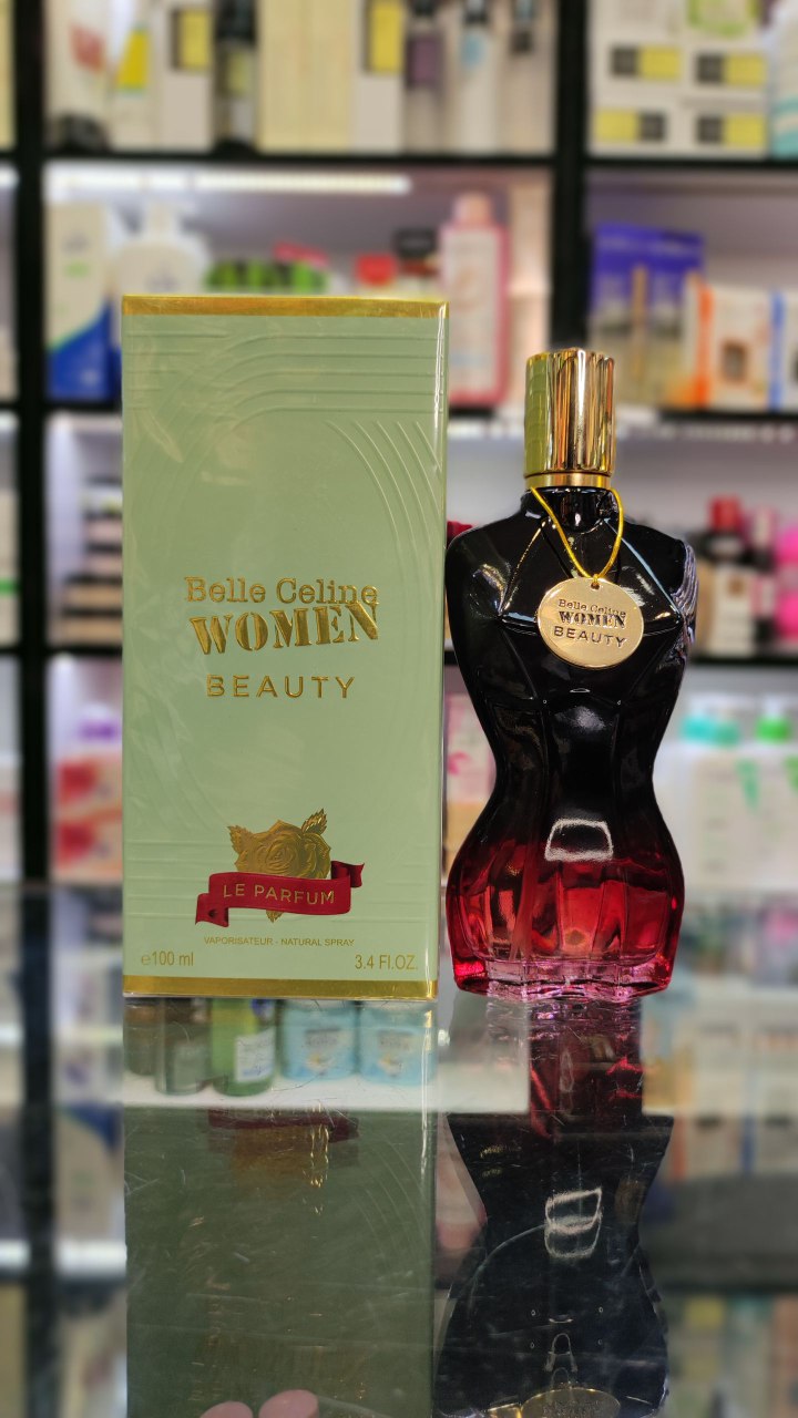 عطر بله سلین وومن بیوتی فرگرانس ورلد Fragrance World Belle Celine women Beauty Le Parfum مشابه عطر ژان پل گوتیه لا بل له پرفیوم Jean Paul Gaultier La Belle Le Parfum عطری است گرم و شیرین، زنانه و شیک.