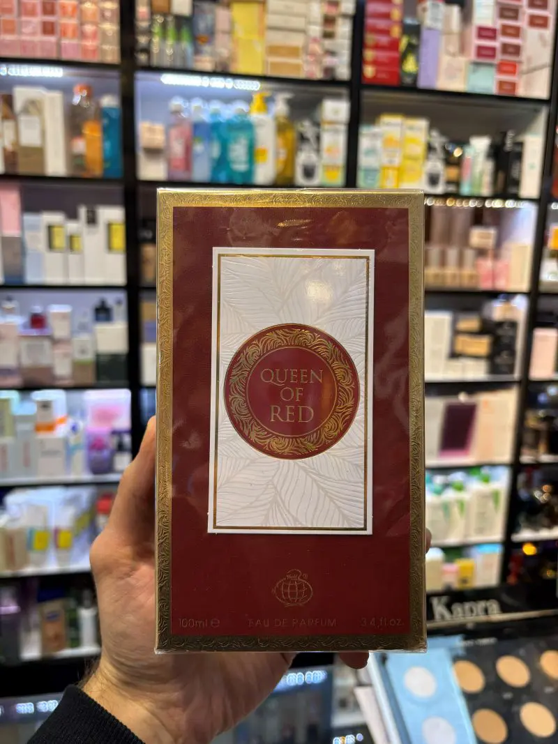 ملکه سرخ رنگ کمپانی فرگرانس ورلد با رایحه ای خاص و تکرار نشدنی؛ عطری سلطنتی با نت های زنانه و خاص که زیبایی و جذب یک ملکه را برایتان تداعی میکند و رنگ سرخ آن اشاره به قدرت اغواگر و مدهوش کننده دارد. کویین آف رد فرگرانس ورلد رایحه ای انحصاری و خاص شرکت اماراتی فرگرانس ورلد با طبعی معتدل و خنک که از ماندگاری خوبی برخوردار است و نت های خاص به کار رفته در این عطر از آن رایحه ای لوکس و شیک ساخته است و با طراحی شیشه بی نظیر و شکیل خود آن را تبدیل به کی عطر لوکس با رایحه ای گیرا و جذاب کرده است، عطری لوکس که با ظرافت و قدرت زنانه درهم آمیخته شده است و اعتماد بنفس و اقتدار را در شما قوت میبخشد.