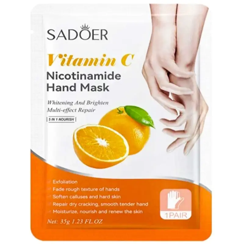 ماسک دست حاوی ویتامین سی سادور (Sadoer Vitamin C Nicotinamide Hand Mask) یک محصول مراقبتی با تاثیر روشن کنندی و شاداب کننده پوست میباشد که با استفاده از آن نتیجه فوق العاده خوبی را مشاهده خواهید کرد. این محصول با ترکیبات مغذی و آنتی اکسیدان های کوجود در ترکیب این ماسک از پوست در برابر عوامل محیطی آسیب زا محافظت خواهد کرد و به روشن تر شدن پوست کمک شایانی خواهد کرد.