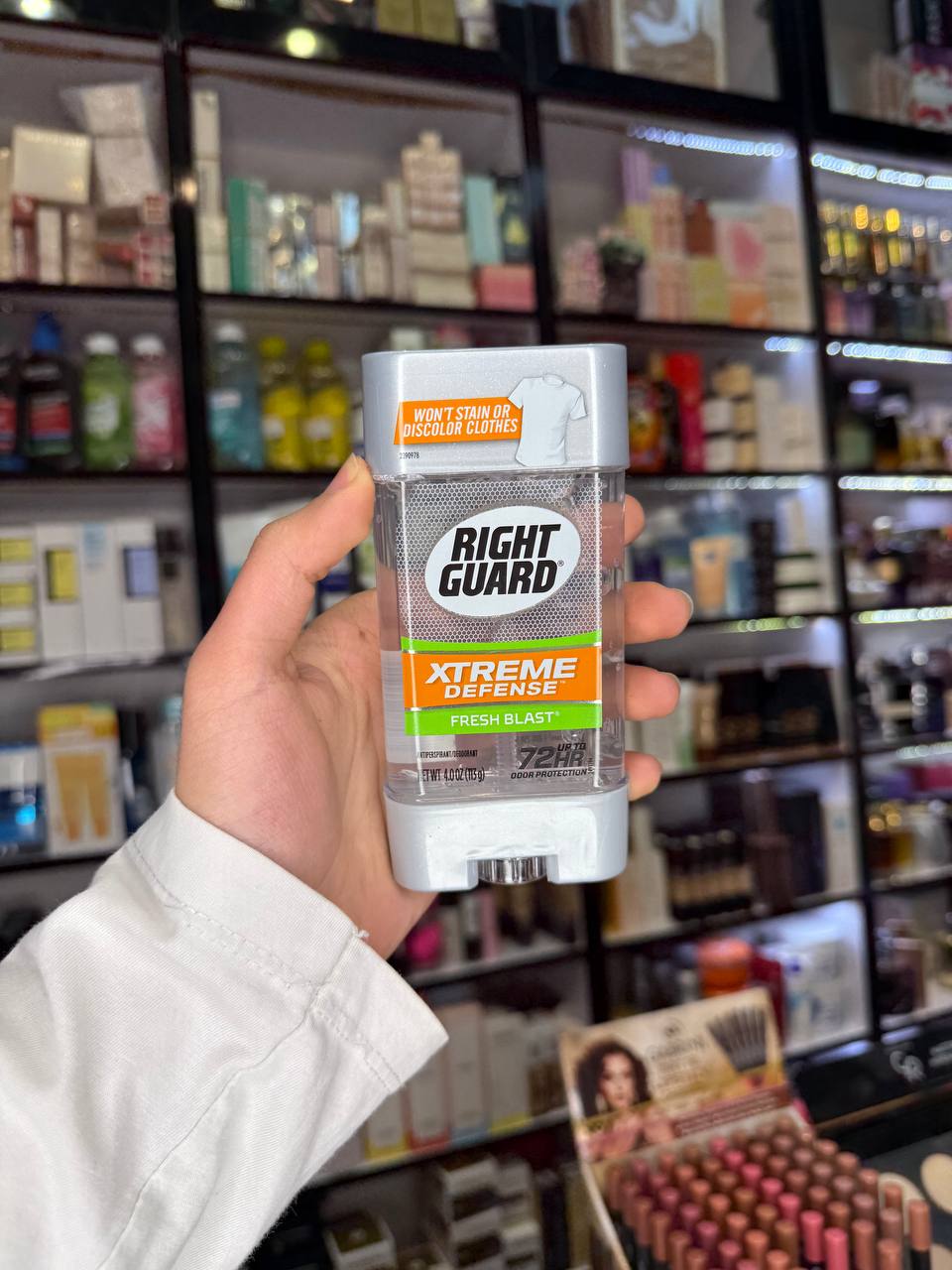 مام ضد تعریق 72 ساعته Right Guard مدل Fresh Blast محصول انحصاری برای آقایان است که تا ۷۲ ساعت مانع از تعریق شده و محافظ پوست شما از آلودگیها و میکروبها برای جلوگیری از بوی بد است. محافظ لباس شما در برابر لکه های زرد است.