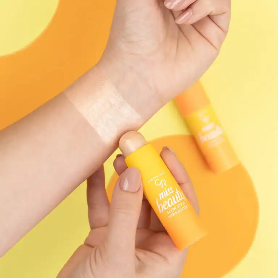 برند محبوب و معتبر گلدن رز،هایلایتر Miss Beauty رو به صورت استیکی تولید کرده است.به وسیله ی این استیک به راحتی میتوان استروبینگ انجام داد و نقاطی مانند نواحی زیر ابرو، استخوان گونه،گوشه چشم و تیغه ی بینی را هایلایت و براق کرد.این محصول با پیگمنت غنی و لطیف با بافت کرمی لطیف و ابریشمی به خوبی روی صورت پخش شده و کاملاً سبک می باشد. این محصول برای انواع پوست مناسب است و مخصوصا برای یک آرایش تابستانی و برنز گزینه ای بی نظیر می باشد. این استیک دارای یک رنگ می باشد که هایلایت ملایم زیبایی رو روی پوست ایجاد می کنند. این محصول برای انواع رنگ پوست مناسب بوده و ظاهری درخشان و زیبا به پوست می دهد.هایلایتر استیکی گلدن رز پیگمنت های پر رنگ و غنی دارد که حالتی ابریشمی و بافتی روشن روی پوست ایجاد می کند.