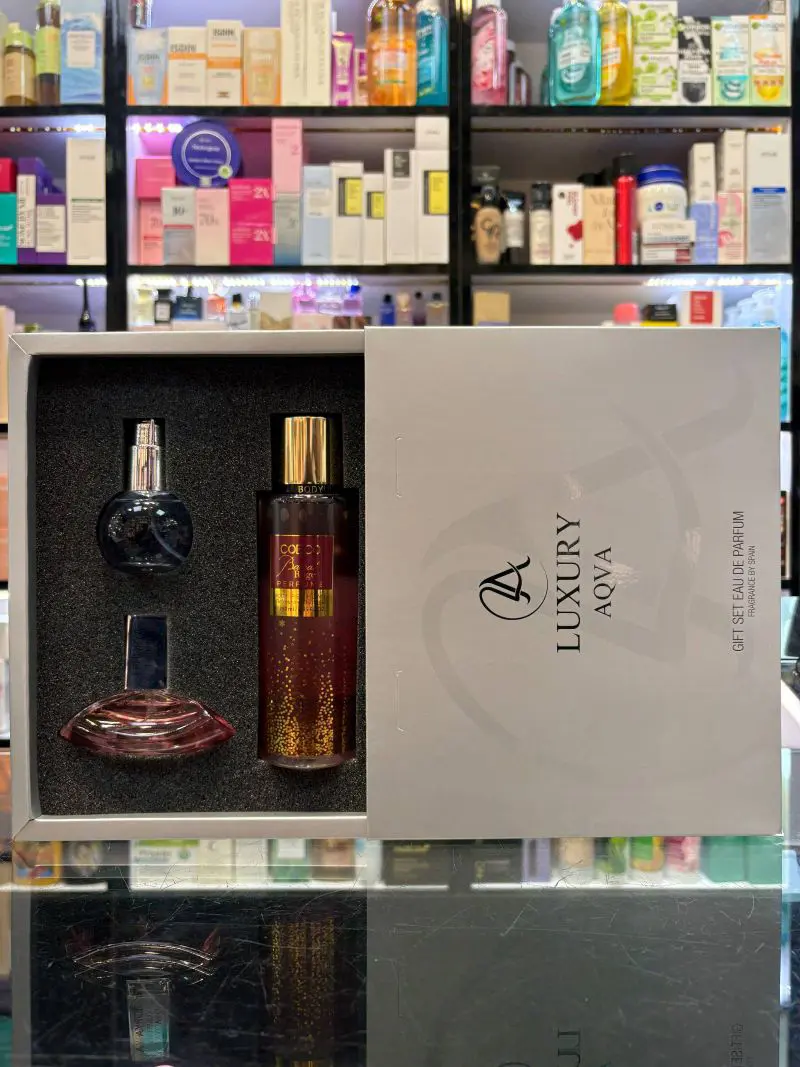 پک کادوی تکه بادی اسپلش و ادکلن مردانه شکرت کوبکو و لاکچری آکوا یکی از بهترین گزینه های هدیه به خانوم ها میباشد زیرا که هم از نظر ظاهر و اندازه، ظاهری شیک و اندازه مناسب و چشم گیر و همچنین کیفیت بسیار بالایی دارد و ارزش آن را بالاتر خواهد برد. این پک هدیه مردانه حاوی دو عدد عطر مینیاتوری 25 میل برند لاکچری آکوا و یک بادی اسپلش 200 میل برند کوبکو میباشد که هر 3 محصول از لحاط دوام و ماندگاری کیفیت بسیار خوبی را دارا هستند.