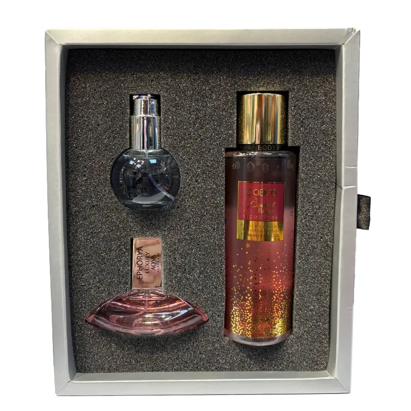 بادی اسپلش این پک کاملا بوی تعریق را از بین میبرد و هیچگونه حساسیت پوستی ایجاد نخواهد کرد و آن را یک گزینه امن برای کادو کرده است همچنین هر 3 رایحه داخل این پک از رایحه های همه پسند و جدید دنیای روایح و عطر و ادکلن میباشد که هر آقایی آن را خواهد پسندید. رایحه عطر های مینیاتوری این پک ایفوریا و اکلت میباشد و بادی اسپلش این پک باکارات رژ 540 میباشد.