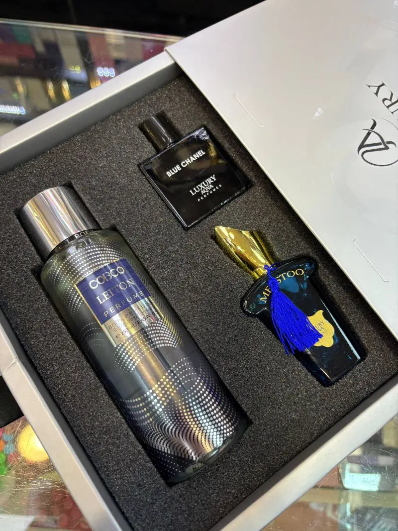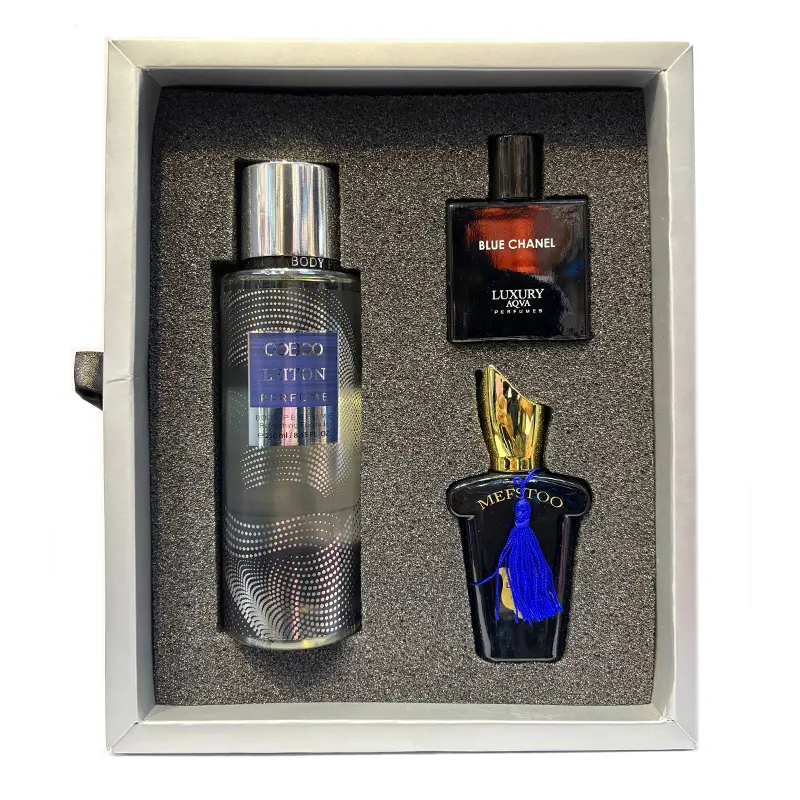 بادی اسپلش این پک کاملا بوی تعریق را از بین میبرد و هیچگونه حساسیت پوستی ایجاد نخواهد کرد و آن را یک گزینه امن برای کادو کرده است همچنین هر 3 رایحه داخل این پک از رایحه های همه پسند و جدید دنیای روایح و عطر و ادکلن میباشد که هر آقایی آن را خواهد پسندید. رایحه عطر های مینیاتوری این پک کازاموراتی زرجف مفستو و بلو شنل-چنل میباشد و بادی اسپلش این پک مارلی لیتون میباشد.