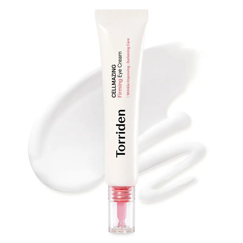 پوست دور چشم نیازمند مراقبت ویژه و خاصی میباشد که این مراقبت باعث جلوگیری از بروز علائم پیری زود رش و افتادگی پوست دور چشم خواهد بود؛ کرم دور چشم جوانساز و ضد چروک توریدن (Torriden Cellmazing Firming Eye Cream) محصولی تخصصی با فورمولاسیون ملایم و غنی میباشد که گزینه ای عالی برای افرادیست که میخواهند از پیری و چین و چروک پوست دور چشم جلوگیری کنند چرا که این کرم دور چشم با حاوی بودن ترکیبات غنی مانند کلاژن، رتینول و پپتاید تاثیری فوق العاده در محو کردن خطوط ریز دور چشم و همچنین جلوگیری در ایجاد آنها خواهد بود و اصلی ترین ماده تشکیل دهنده این کرم دور چشم سفت کننده و جوانساز توریدن کمپلکس کلاژن 5 گانه 5D با وزن مولکولی پایین با قابلیت نفوذ به لایه های زیر و تاثیر عمقی میباشد؛ همچنین کمپلکس رتینول 4R و کملپکس هیالورنیک 10D در کنار یکدیگر از سه مشکل اساسی چین و چروک، تیرگی و دهیدراته شدن پوست دور چشم را حل خواهند کرد.