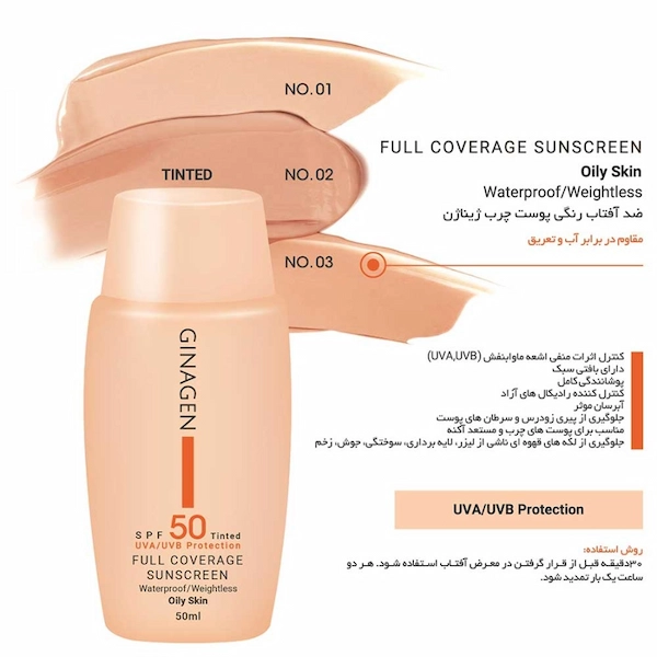 کرم ضد آفتاب رنگی ژیناژن مناسب پوست چرب و مختلط – GINAGEN